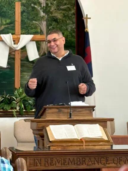 BCM/D Director of Church Strengthening Jeremy Dickson shares at Barnesville’s Men’s Conference. (Photo submitted)