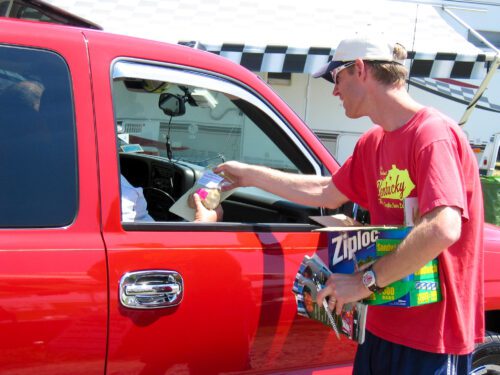 Each year, volunteers give out homemade cookies (made by BCM/D churches) along with New Testaments and Bible tracts. They host cookouts and give away burgers and hot dogs, and have chapel services. They’re also partnering with nationally known Southern Baptists.& Bluegrass group Chip & Nikki Headley to host a gospel concert. Recently, they began working with the raceway leadership to provide golf cart rides to those who need a lift.