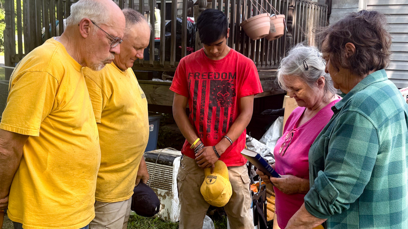Before leaving, Wolford presented Mary with a Bible signed by the entire team. Linda prayed with her, and Mary accepted the Bible with a shy smile, clearly moved by the gesture.