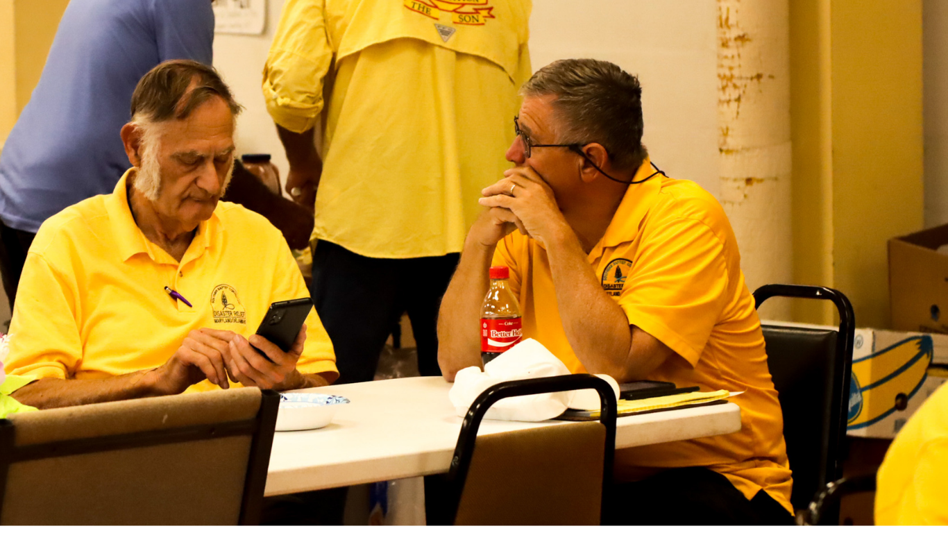 Feeding ministry volunteers began preparing breakfast at dawn, packed grab-and-go lunches, and prepped dinner, while laundry teams kept the washers and dryers going throughout the day. Chaplains prayed over meals and led devotions.