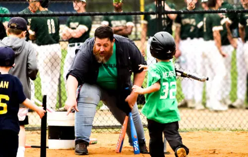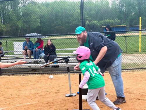 On a recent Saturday morning in April, Ben, as catcher, coach, and teacher, is at home base, placing the ball on the tee, encouraging players, and giving instructions. Energetic and gregarious, Ben has a ball with the kids, smiling, laughing, hi-fiving, and thoroughly enjoying himself. He makes the kids light up, and you see they feel comfortable with him. “I try to make it a fun environment because they deserve that,” says Ben, known to many of them as “High Five Guy!”