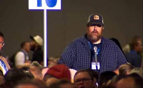 Benjamin Hankin, the pastor of BCM/D affiliated LifeHouse Church, Salem County, N.J., brought the disability ministry motion to the floor at the 2025 SBC Convention. (Screenshot)